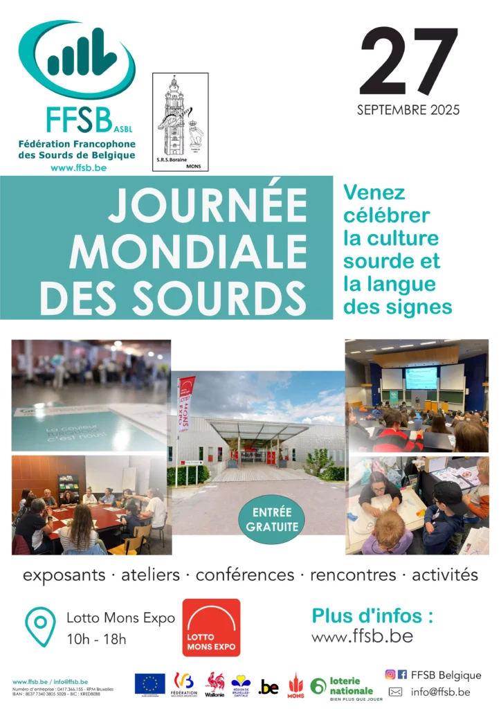Dit evenement wordt georganiseerd door onze partner: de FFSB is een gelegenheid om elkaar te ontmoeten, informatie en kennis uit te wisselen, met partners te discussiëren en op te komen voor onze rechten als dove en slechthorende mensen.